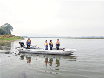 安徽省池州市纪检监察机关聚焦升金湖生态环境保护常态化开展监督,压实职能部门监管责任,筑牢生态环境保护屏障。图为10月13日,该市东至县纪检监察干部与管护队员一起开展巡湖,了解升金湖生态环保问题整改情况。本报记者 张冰 摄