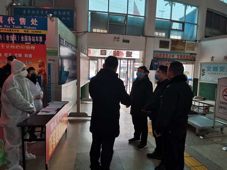 县纪委监委主要负责同志在县长途汽车站内督查车辆管制、车辆车站消毒、进出车站人员登记等防疫工作落实情况。