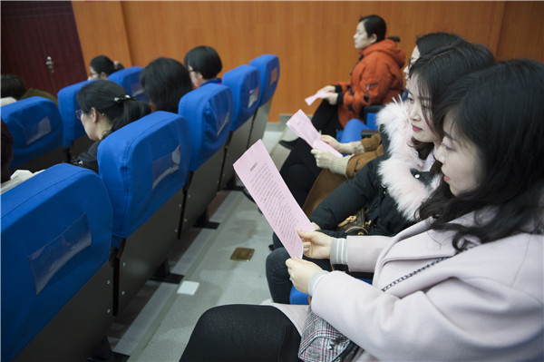 女干部认真阅读《家庭助廉倡议书》